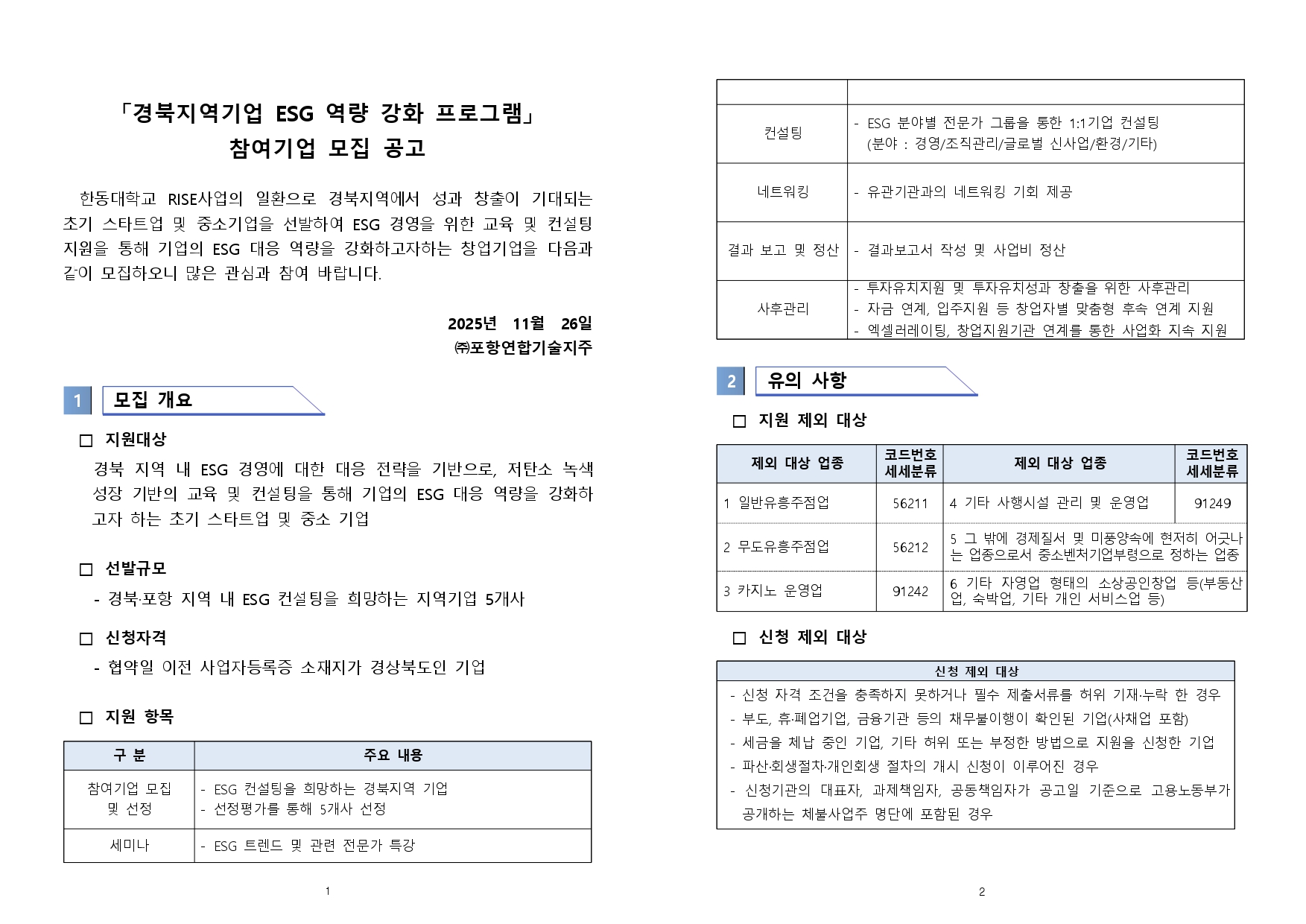 「경북지역기업 ESG 역량 강화 프로그램」참여기업 모집