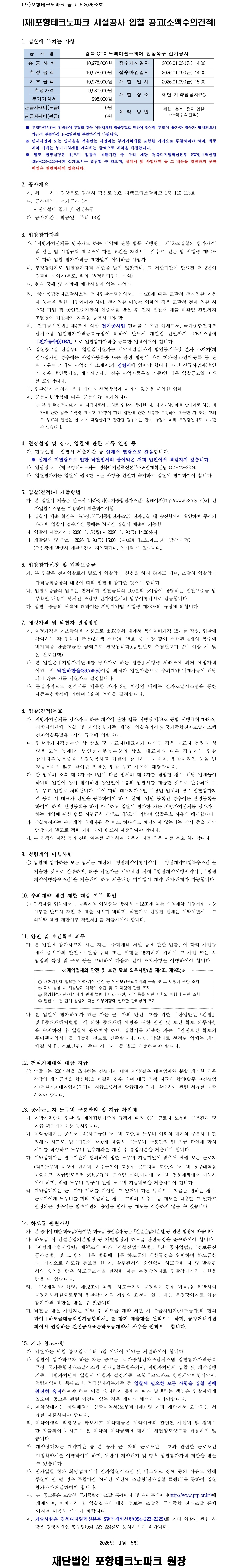 '경북ICT이노베이션스퀘어 원상복구 전기공사' 입찰 공고(소액수의견적)