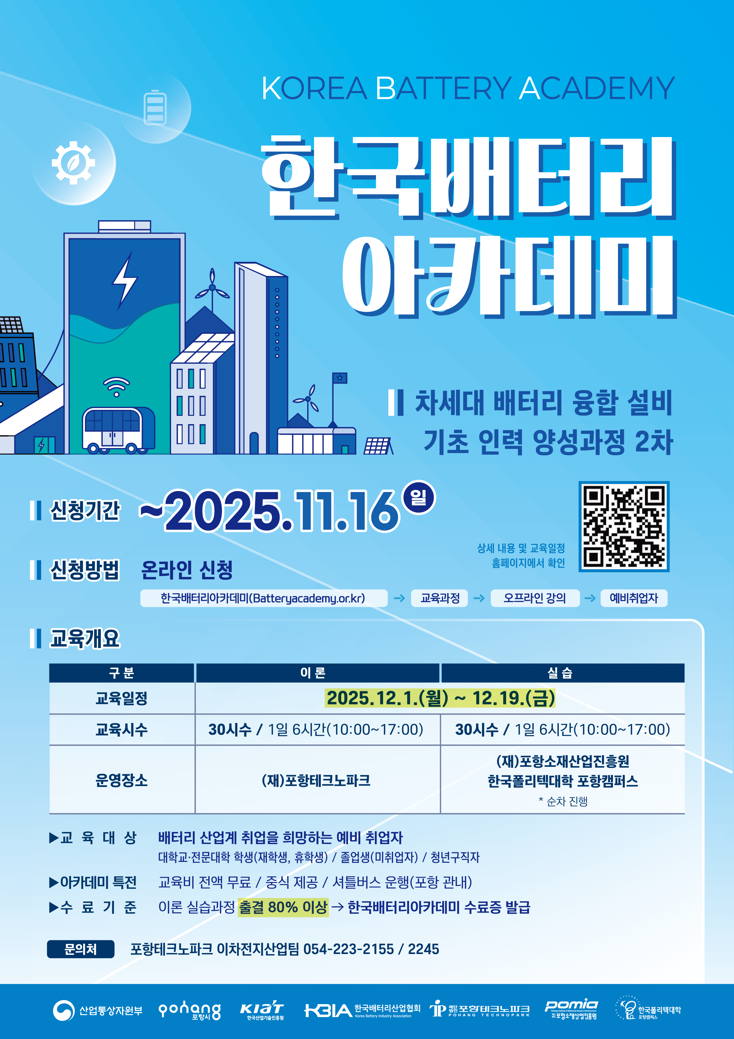 한국배터리아카데미 남부권캠퍼스 예비취업자과정 교육생 5기 모집 공고