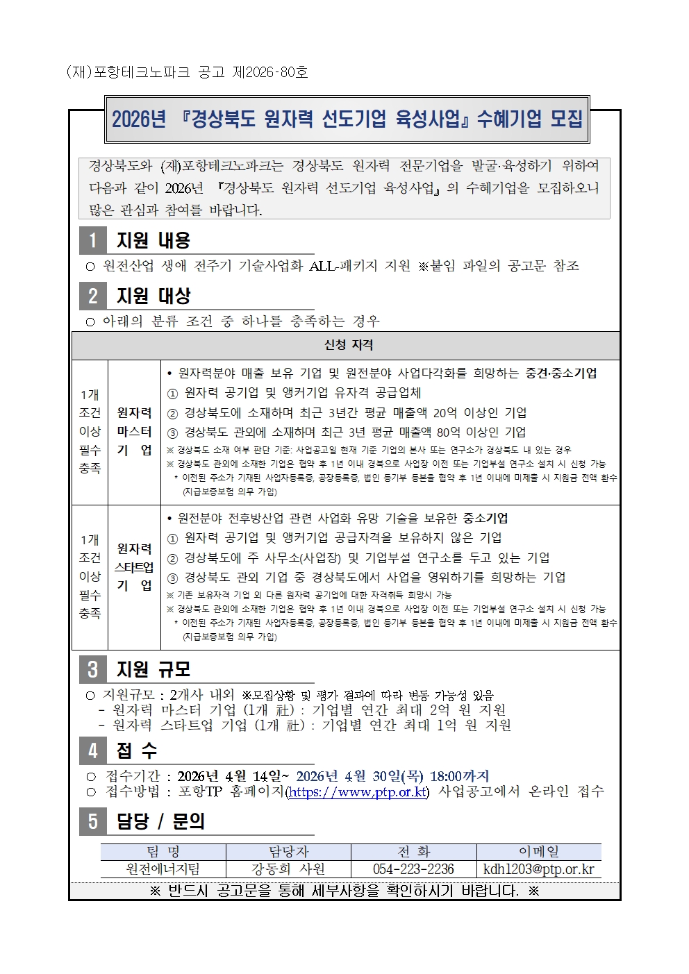 2026년 원자력 선도기업 육성사업 수혜기업 모집공고