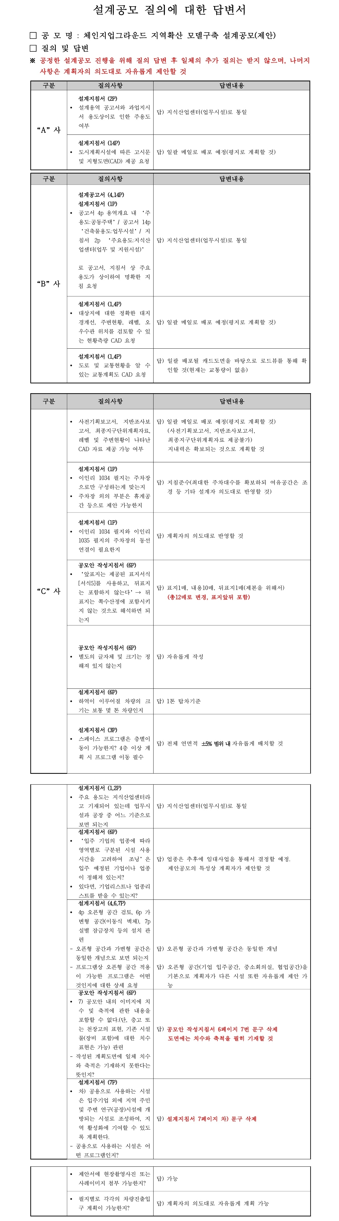 '체인지업그라운드 지역확산 모델구축 설계공모(제안) ' 질의에 대한 답변서