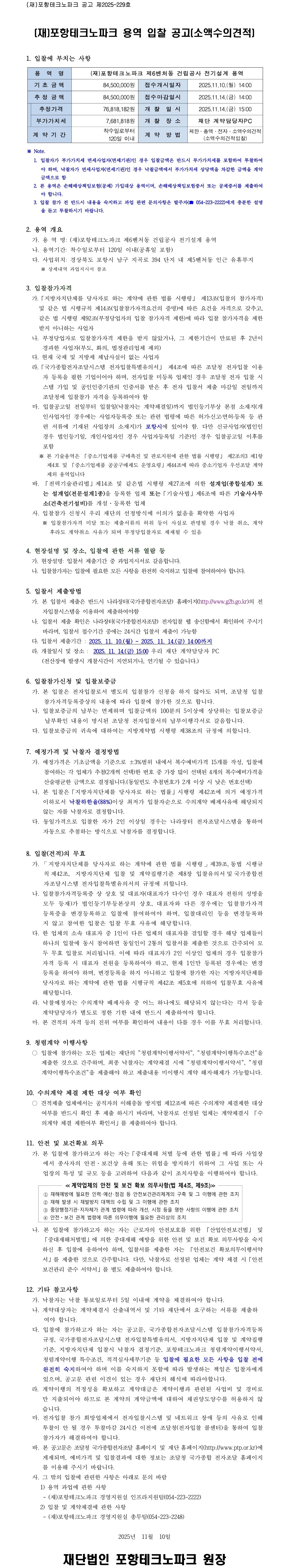 '(재)포항테크노파크 제6벤처동 건립공사 전기설계 용역' 입찰 공고(소액수의견적)